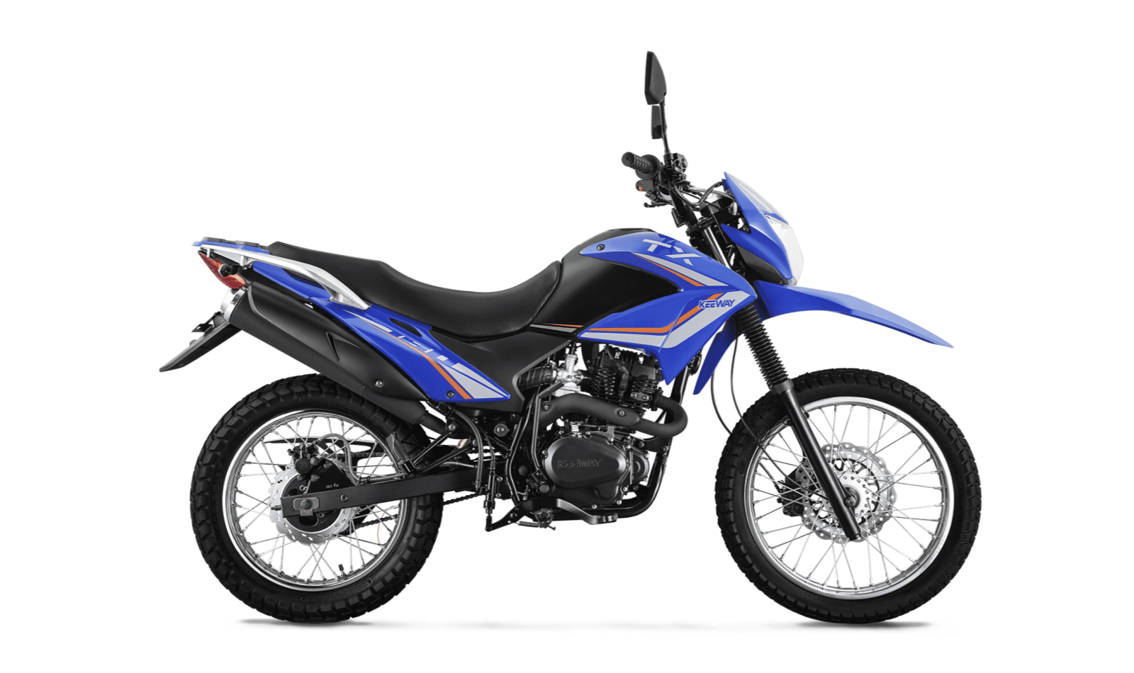 La exclusiva motocicleta de enduro de Keeway, la TX 150, despliega su espíritu aventurero en cada ruta. Con su horquilla de largo recorrido, chasis agresivo y generoso espacio libre, eleva las capacidades de esta máquina de doble deporte a nuevos niveles. Ya sea que estés abriendo tu libro de mapas o la puerta del garaje, emocionantes expediciones en dos ruedas te esperan, y la TX 150 es tu elección definitiva.